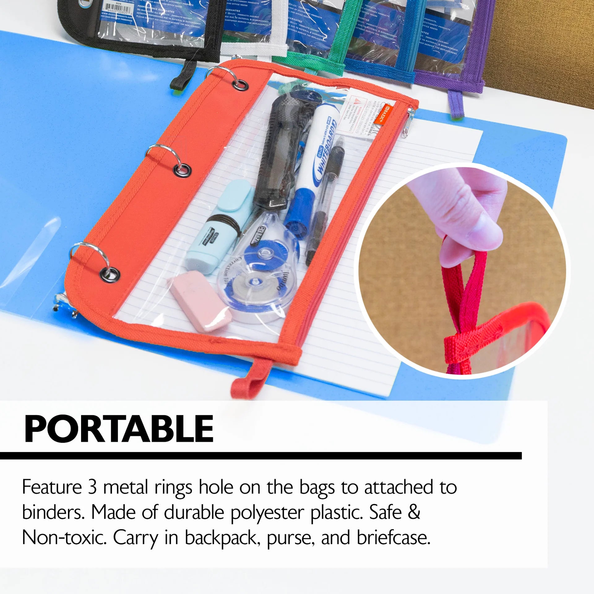 • PORTABLE Size Measure: 11.5" x 6". Feature 3 metal rings hole on the bags to attached to binders. Made of durable polyester plastic. Safe & Non-toxic. Carry in backpack, purse, and briefcase.