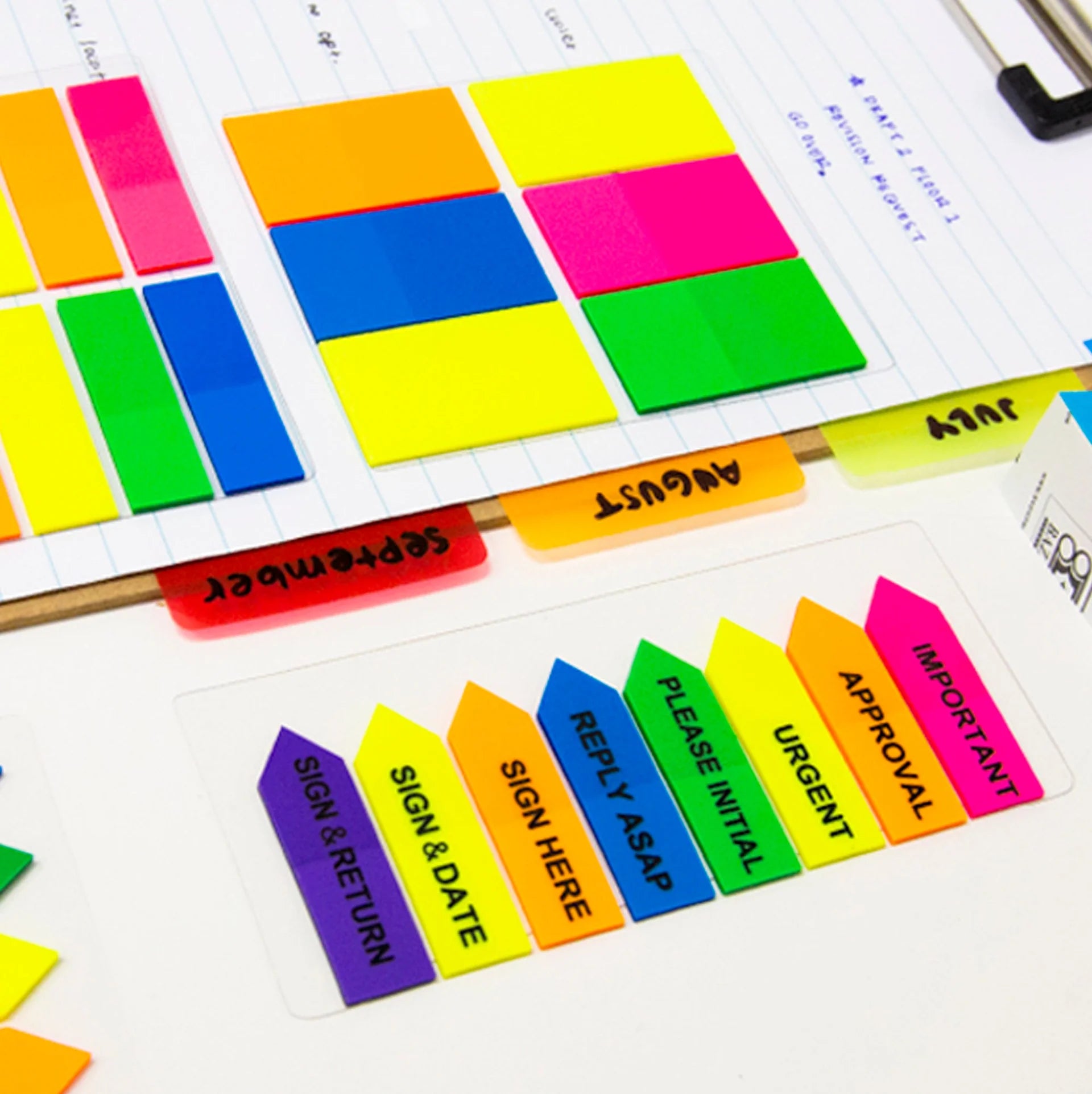 - PREMIUM PET MATERIAL. Smooth surface to write it with pen, pencil, or marker. Waterproof, non-toxic andodorless. Easy to apply and peel. Keep track of documents with colorful reminders.