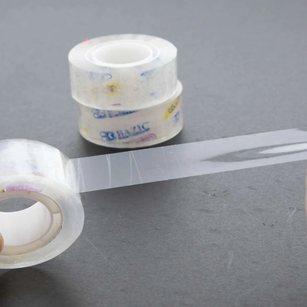 - UNIVERSE Size. Each Tape width is 0.75 inch (18 mm). The 1-inch inner core is suitable for most round and square desk tape dispenser. BAZIC also offer refills tape in matte, clear, crystal color.