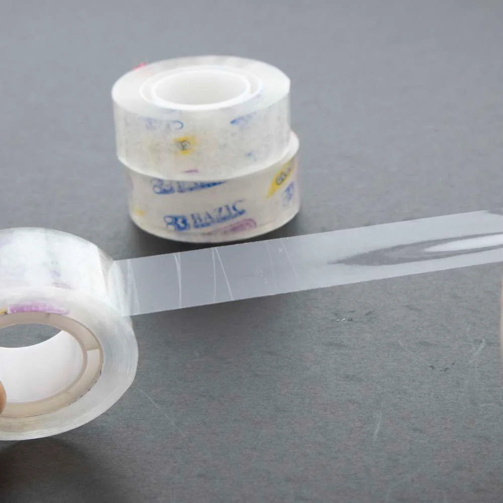 • UNIVERSESize. Each Tape width is 0.75 inch (18 mm). The 1-inch inner core is suitable for most round and square desk tape dispenser. BAZIC also offer refills tape in matte, clear, crystal color.