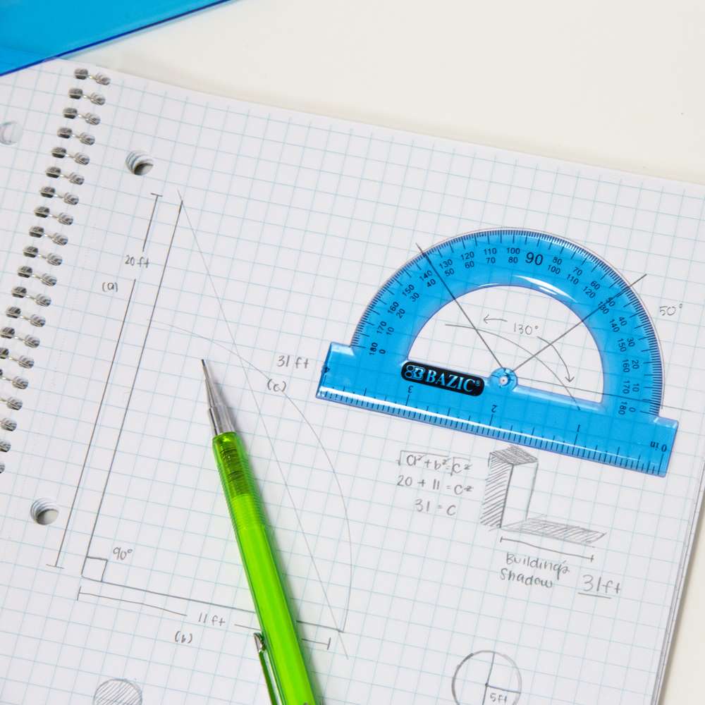 - IDEAL DRAFTING. Durable, lightweight plastic material. Bright clear color makes you measure easier, and you can see the numbers and letters on-page through the protractor