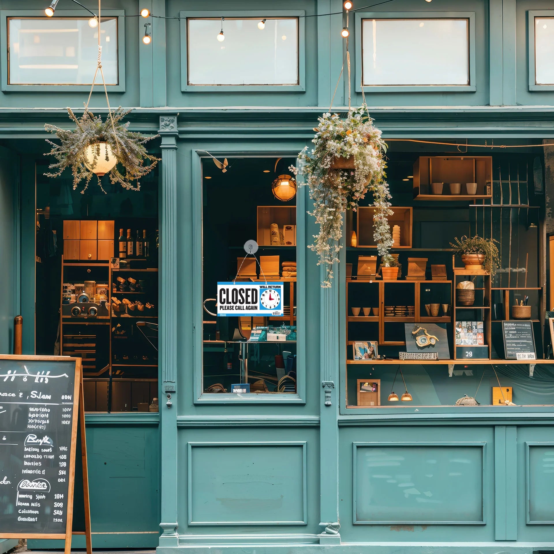 - RETURN TIME. Double Sided design with a red clock hands showing your customers when you will return.