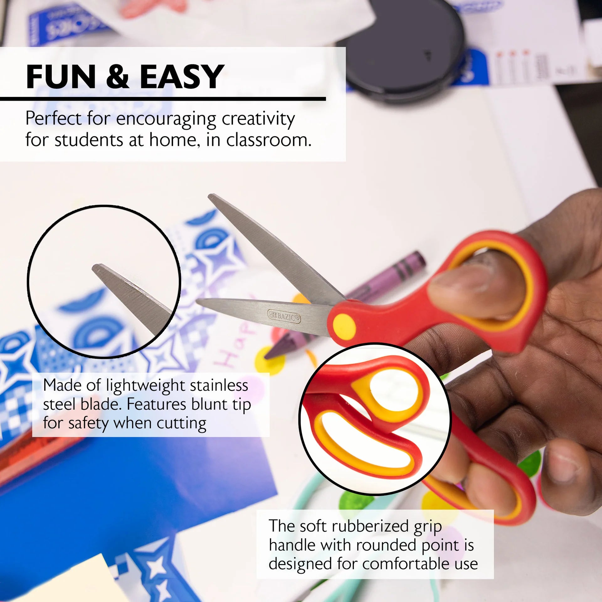 - SAFE & NON TOXIC. Feature safety blunt tip cutter. The soft rubberized grip handle with rounded point is designed for comfortable use. Straight-handle. Available in 4 bright colors.