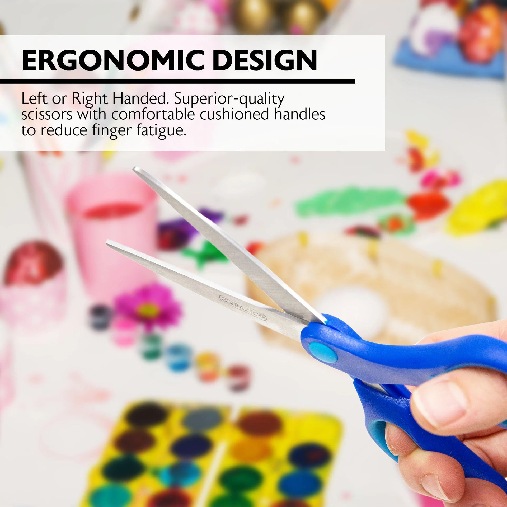 - DURABLE. Superior-quality scissors with comfortable cushioned handles to reduce finger fatigue. Made of lightweight stainless steel blade. Highly resistant to corrosion. Item measures: 6.75" x 2.5"