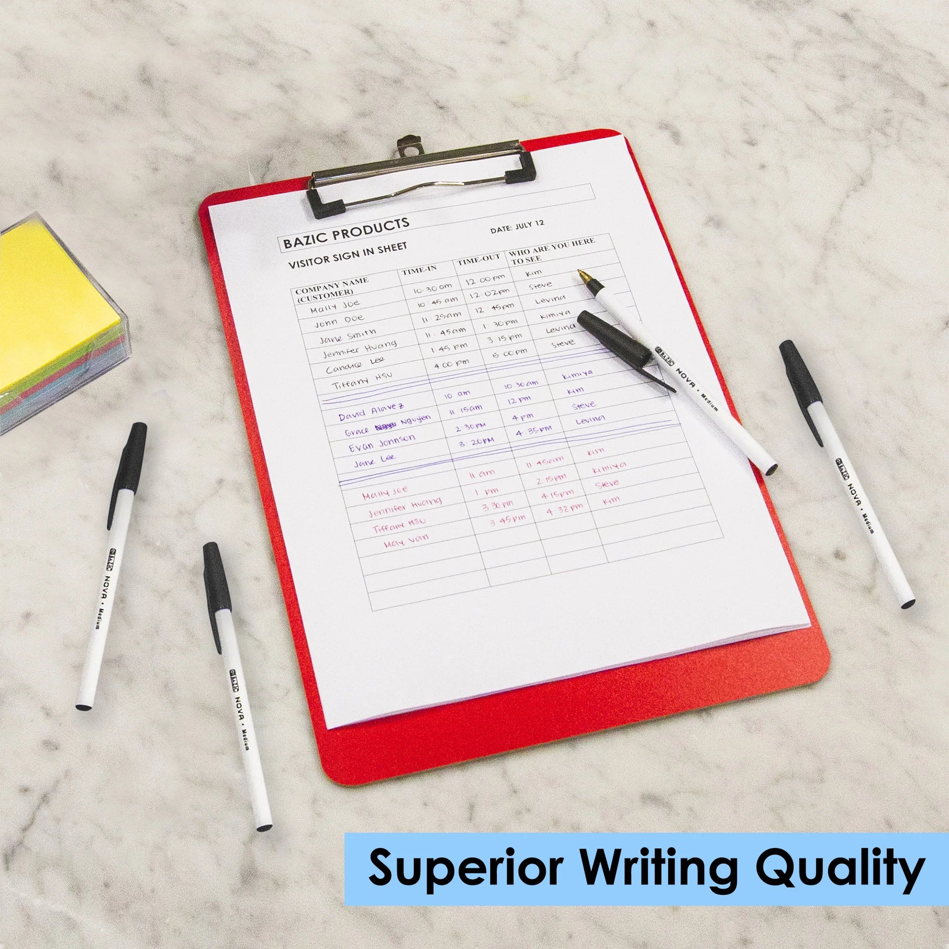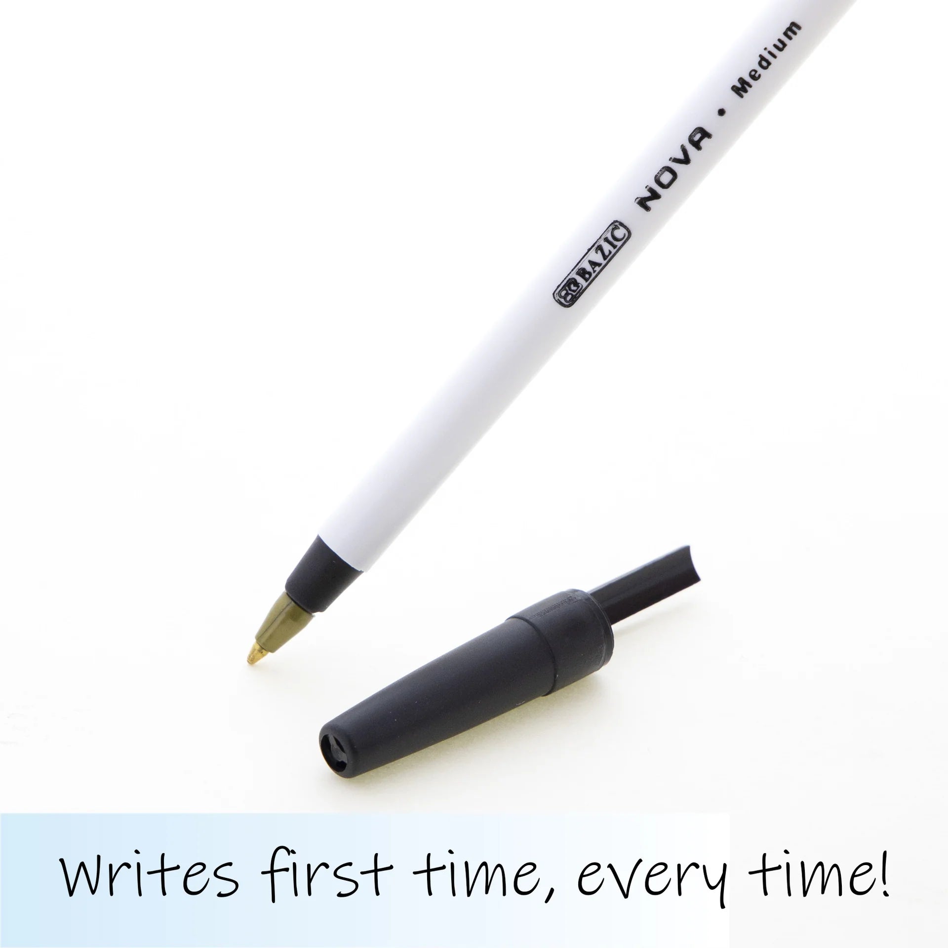 • NOVA BLACK COLOR STICK PEN. Each pack includes 12-Nova Black Stick Pens. The medium ball point spreads ink evenly as you write, offering dependable performance for everyday use.