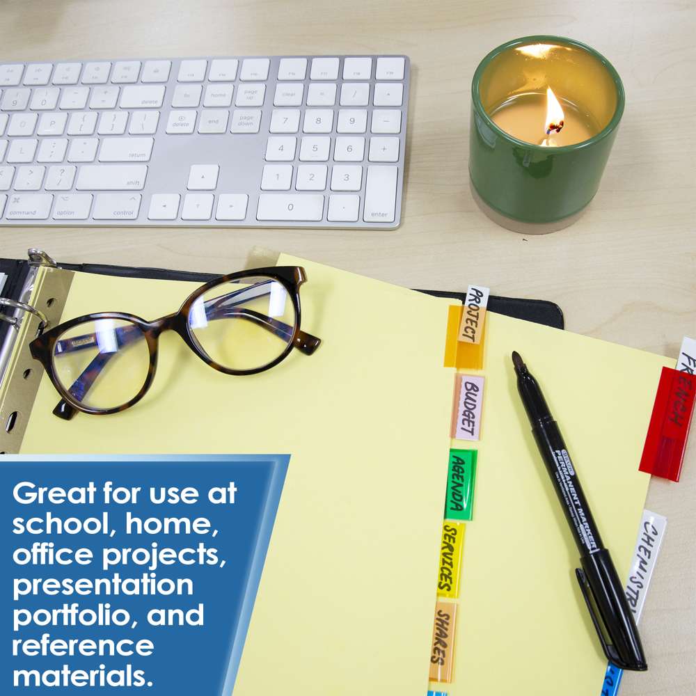 • MULTIPURPOSE. Great for use at school, home, office projects, presentation, portfolio, and reference materials. Snap in or slide in markers to divide or bookmark ring folders or spiral notebooks.