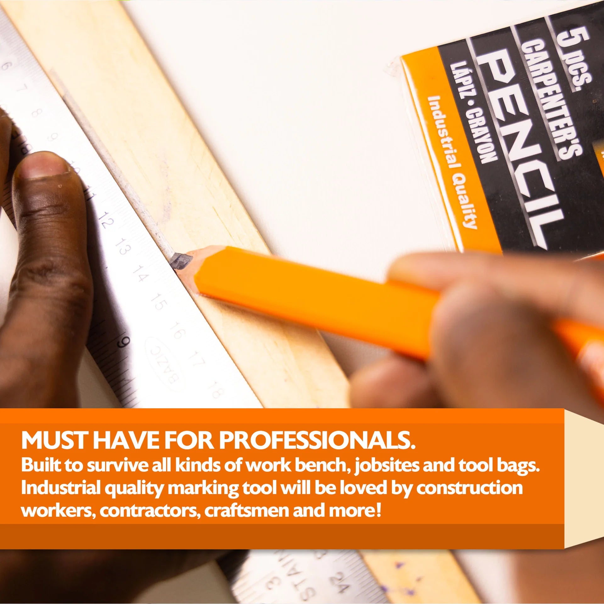 - CARPENTER'S PENCIL. Each pack comes with 5 natural wood base flat pencils. High quality thick carpentry pencil are 7 inches long and 3/16" wide with medium strong HB (#2) sturdy flat lead.