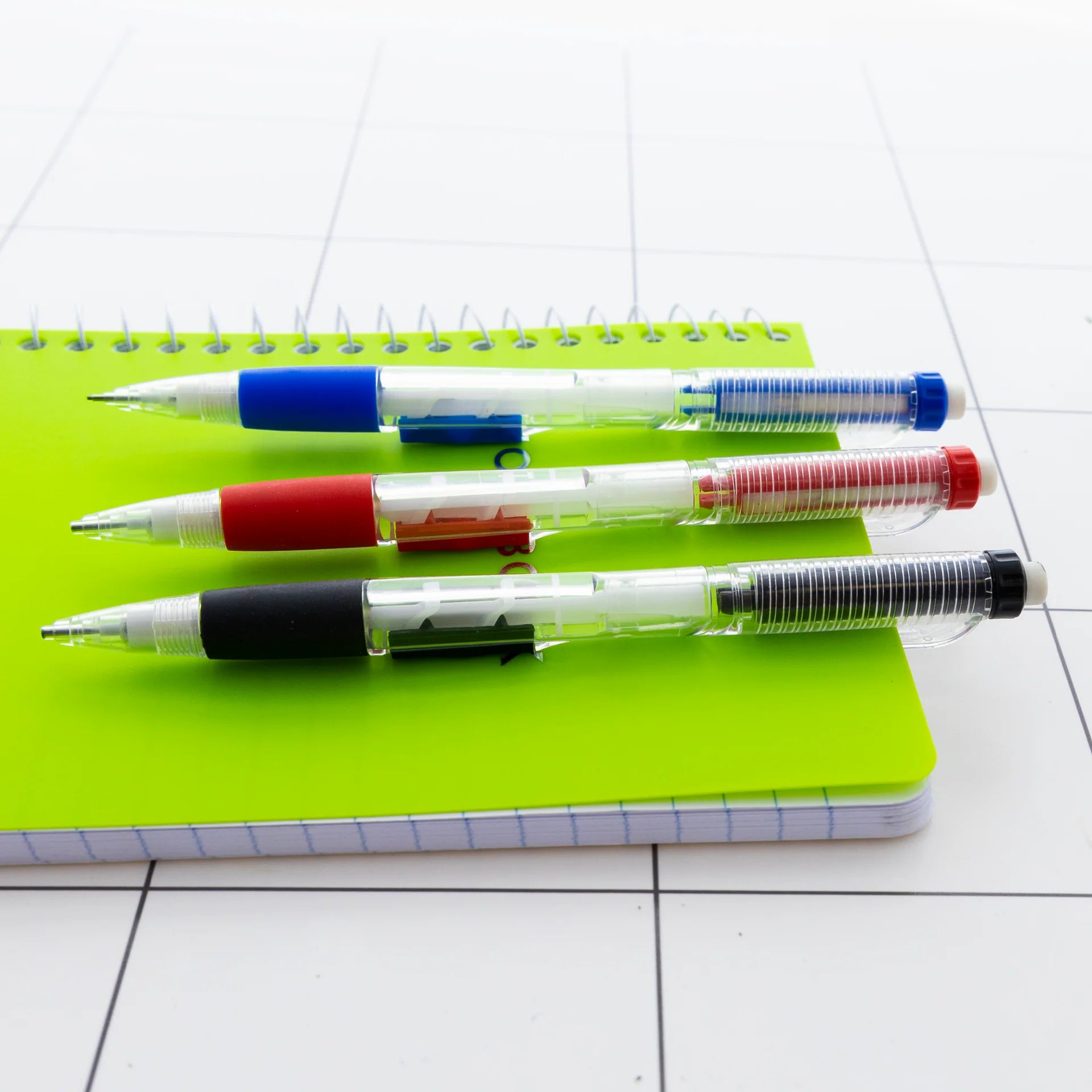 - 0.7MM. Each pack includes 3 pencils with 0.7mm lead, latex-free top eraser, and cushion grip provides extra comfort. Convenient click advance button on the side lets you easily advance lead.