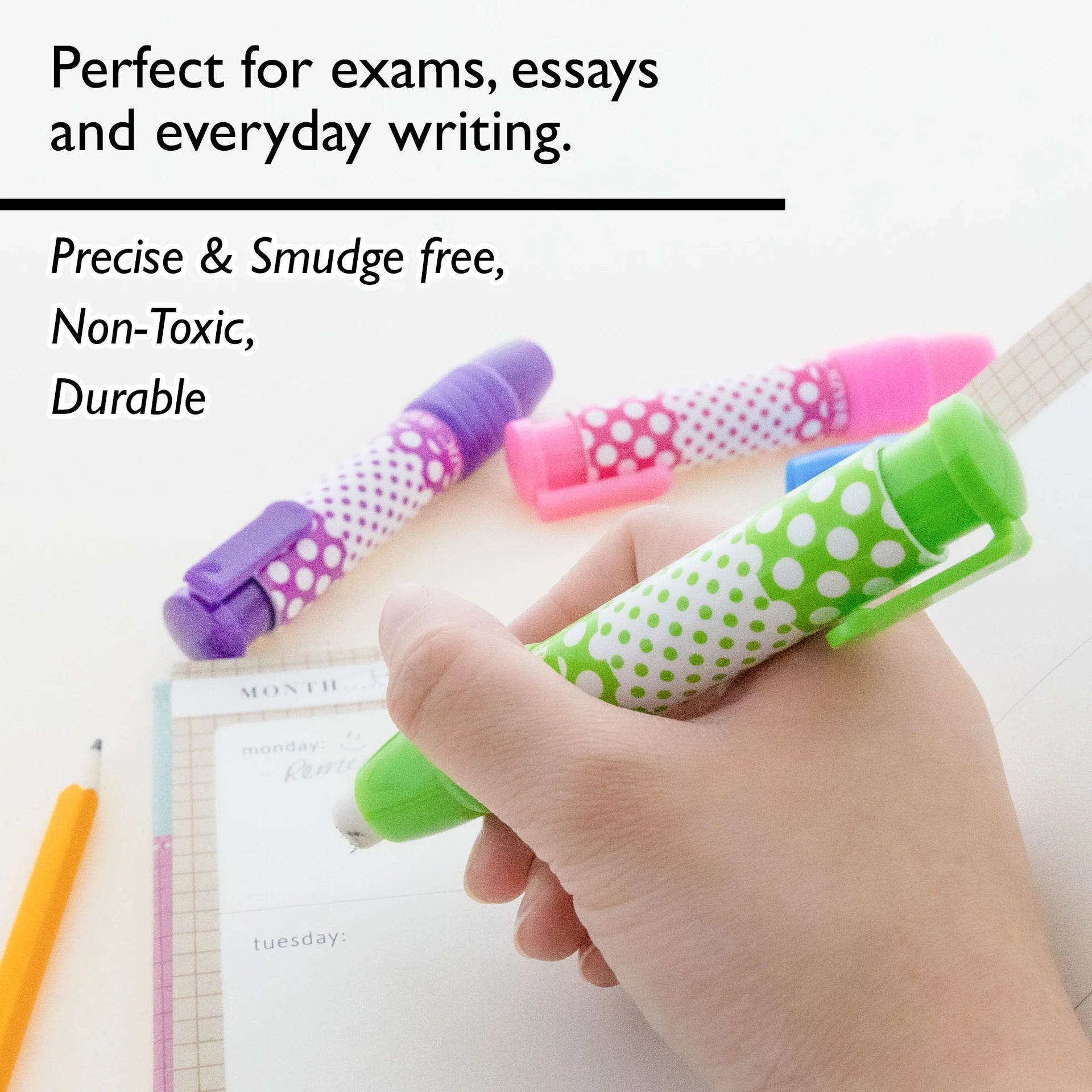 • SAFE & NON TOXIC. PVC & latex-free. Make clean corrections to office documents, and homework. Cute & assorted colors erasers make writing and learning more fun.