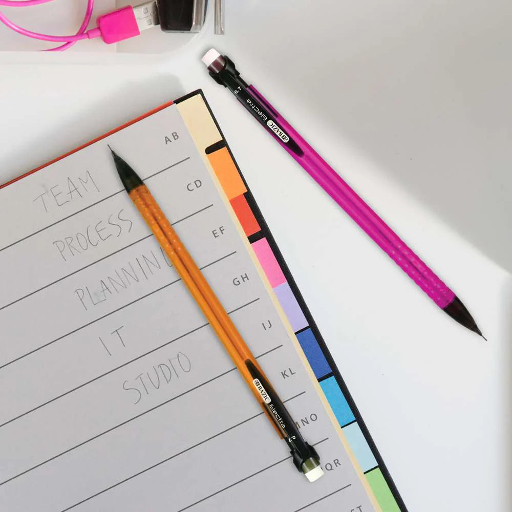 • ELECTRA BRIGHT 0.7MM MECHANICAL PENCIL. Each pack includes 5 pencils with 0.7mm lead. This mechanical pencil is a useful product for drawing or writing. Comes in assorted color; Actual Colors May Vary!