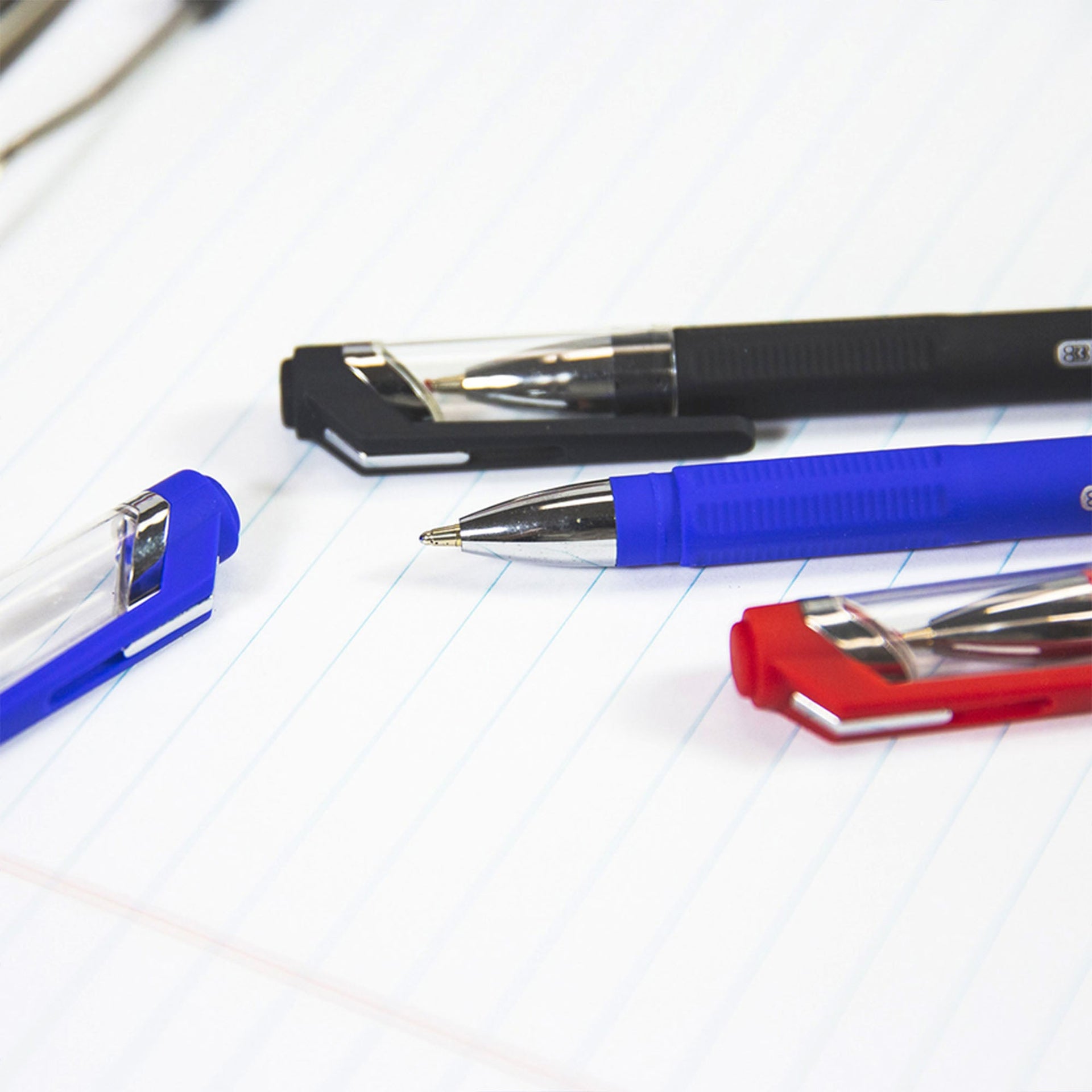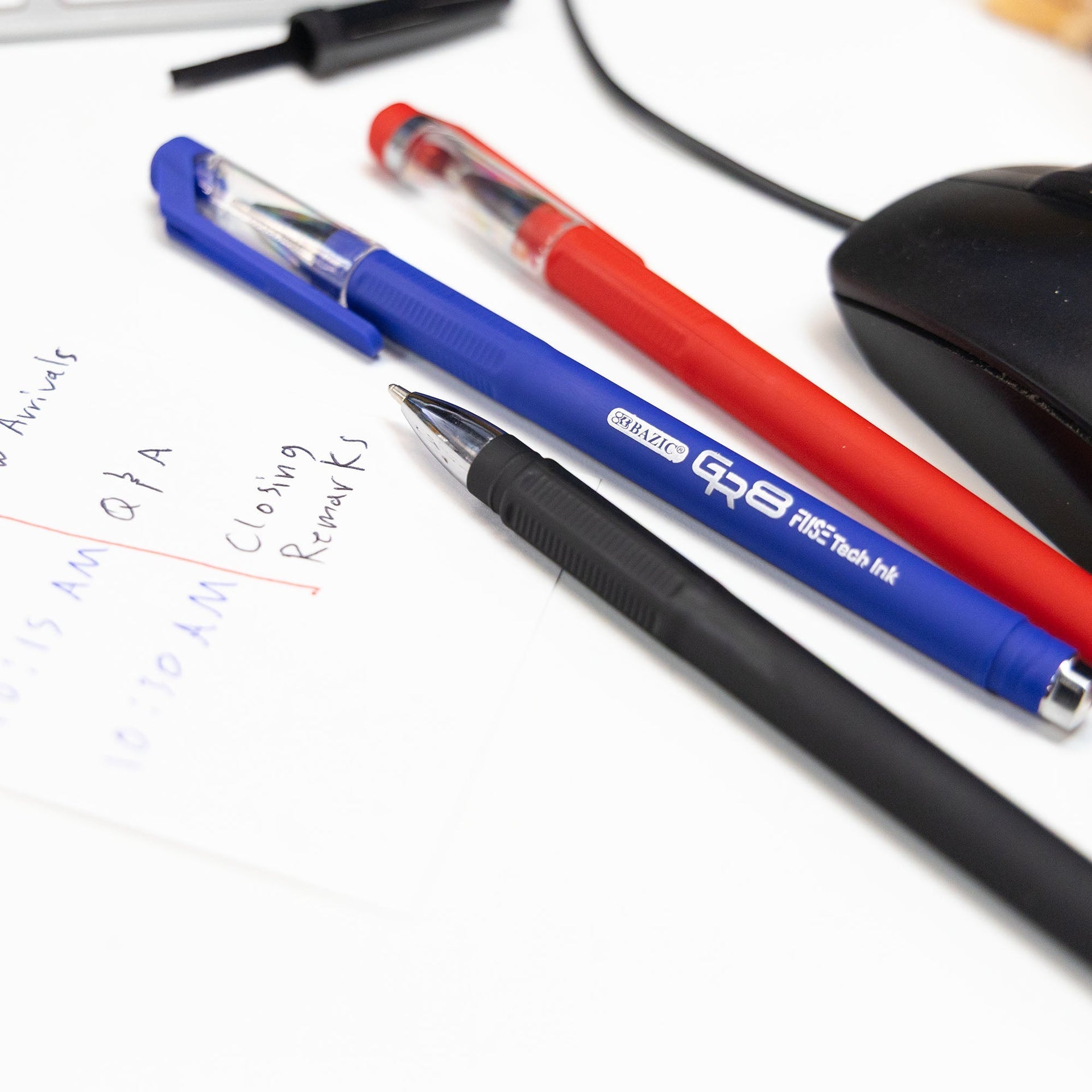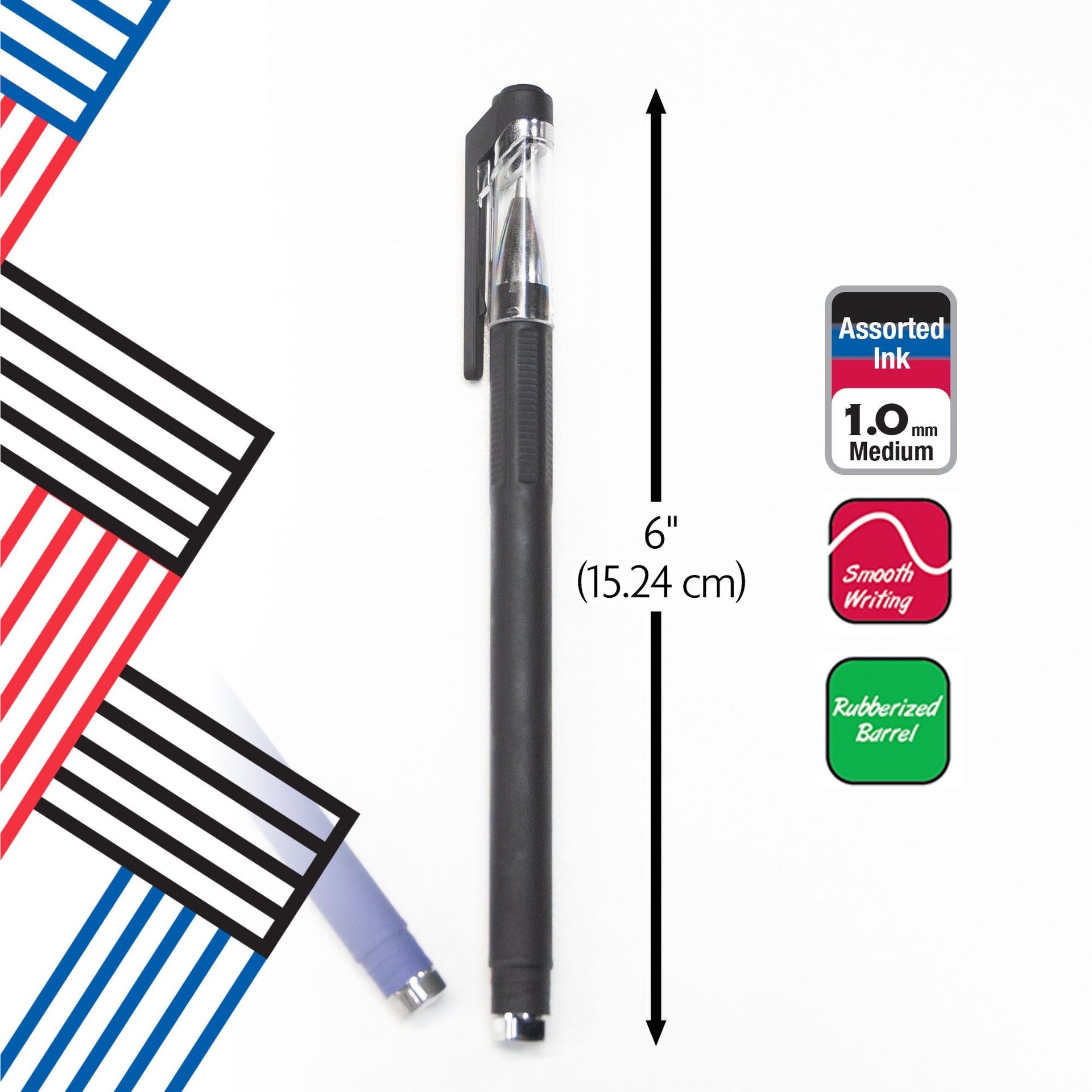 - GR8 ASSORTED COLOR OIL-GEL PENS. Each pack includes 3-Assorted Colors; Red, Blue and Black. Medium point spreads ink evenly as you write, offering dependable performance.