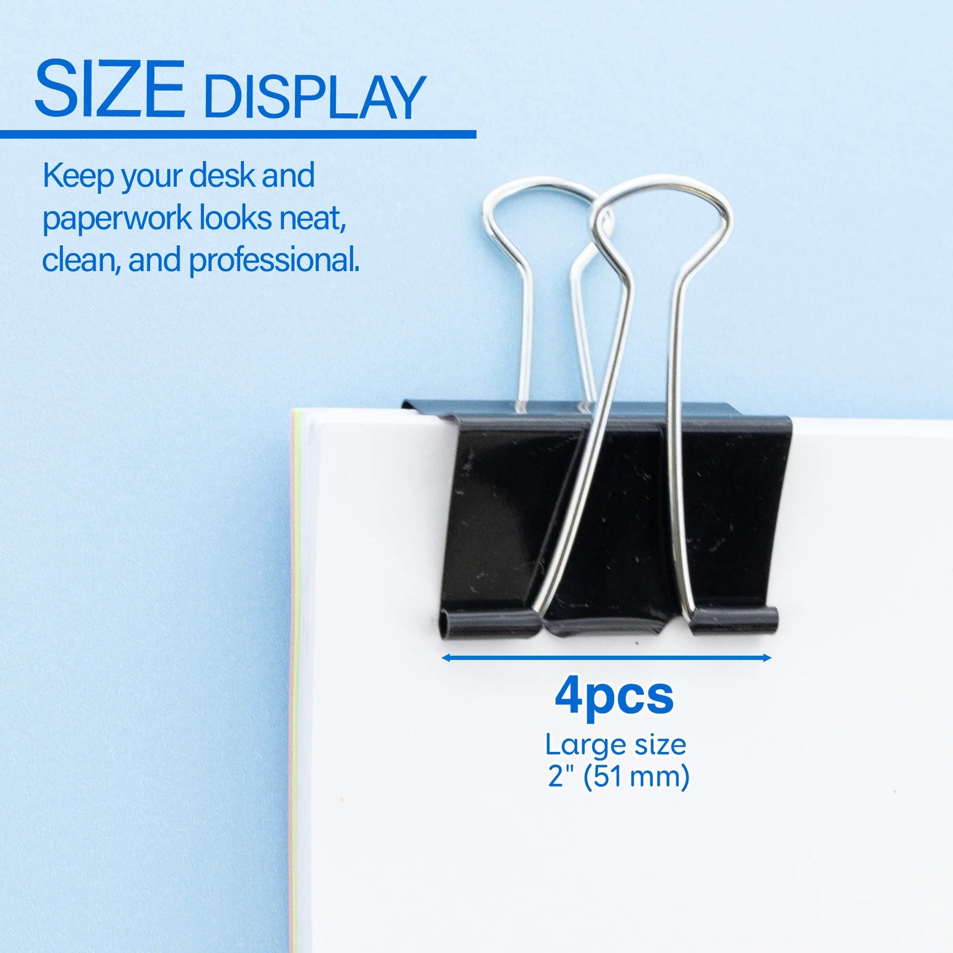 BAZIC Large 2" (51mm) Black Binder Clip (4/Pack), pack of 24