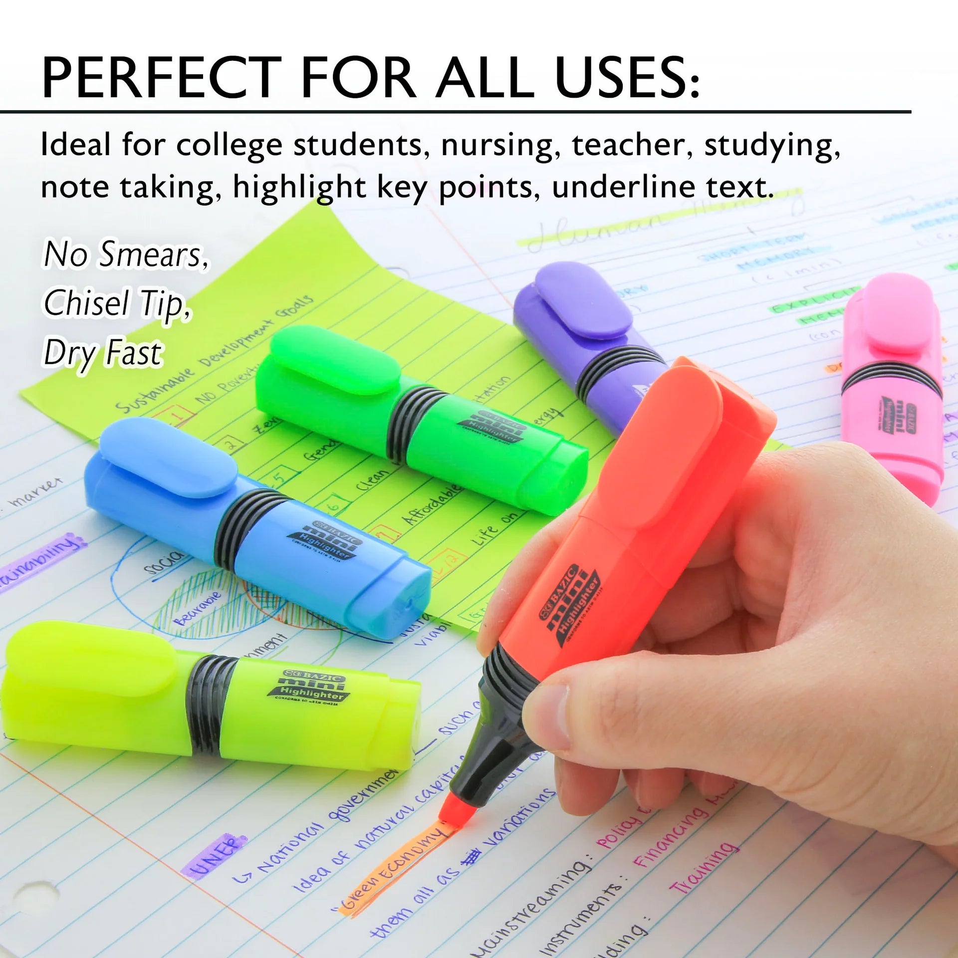 - DESIGN. Mini highlighters come with a rib texture band for non-slip grip. These markers are great for travel as they fit nicely in any compartment or pocket. Pocket clip adds style and convenience.