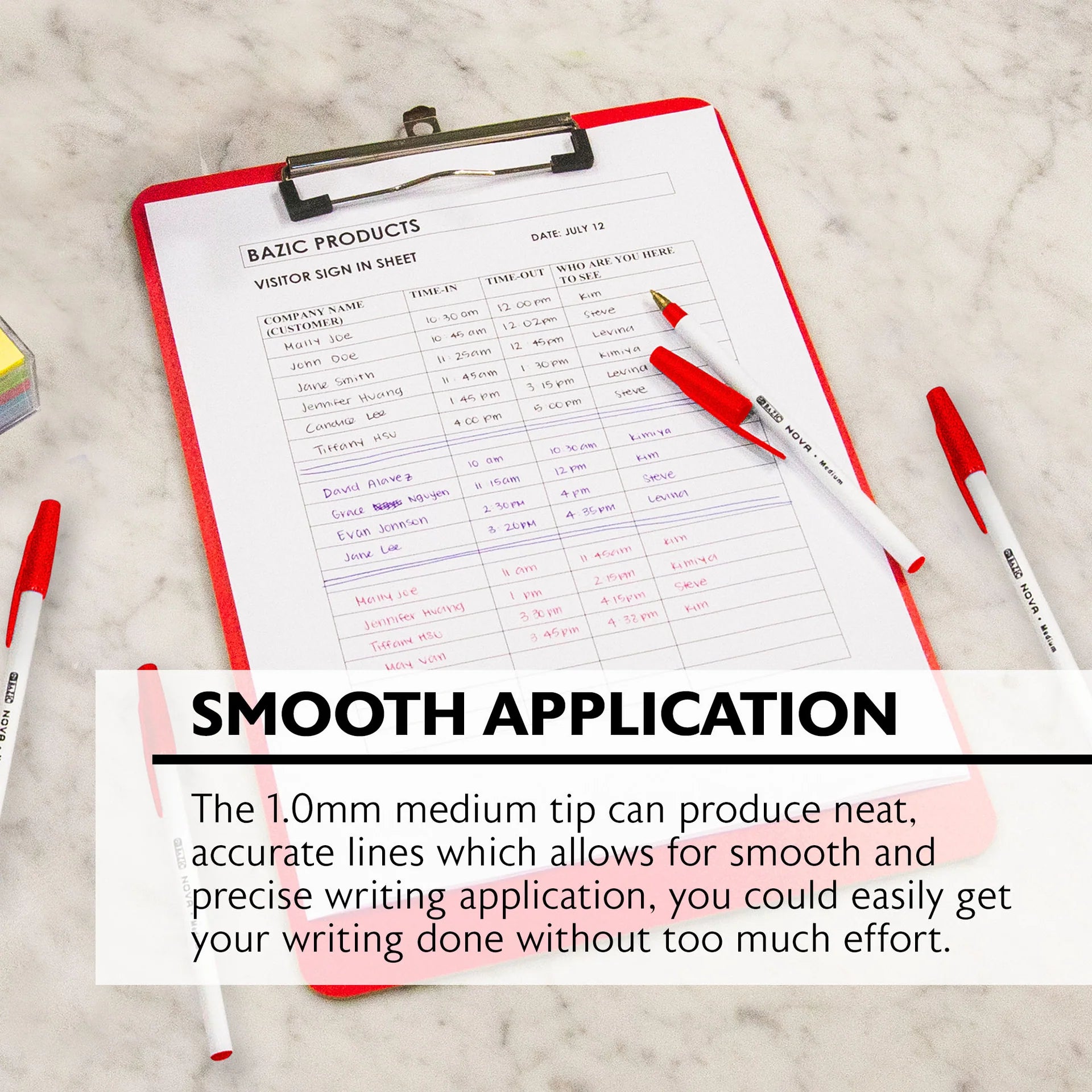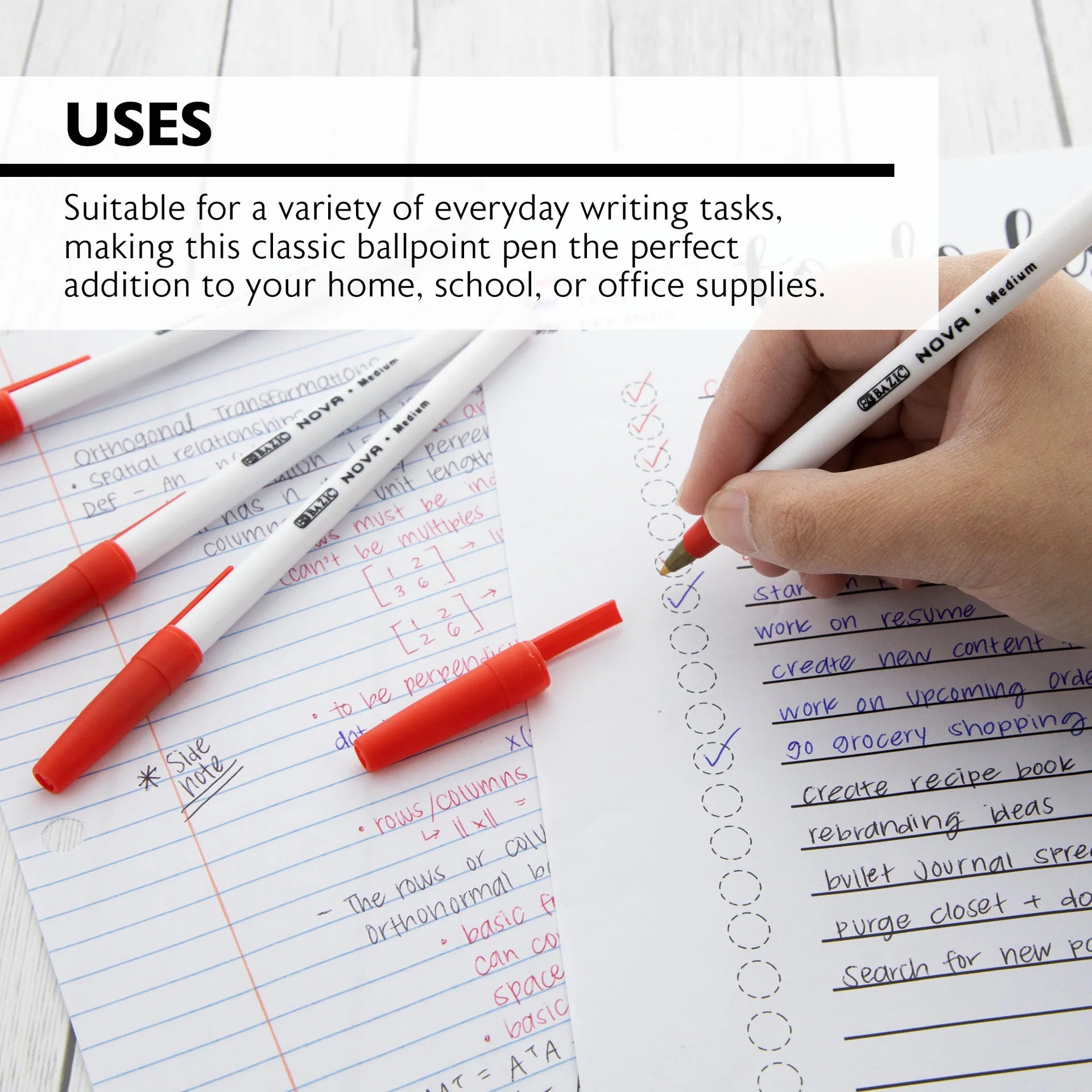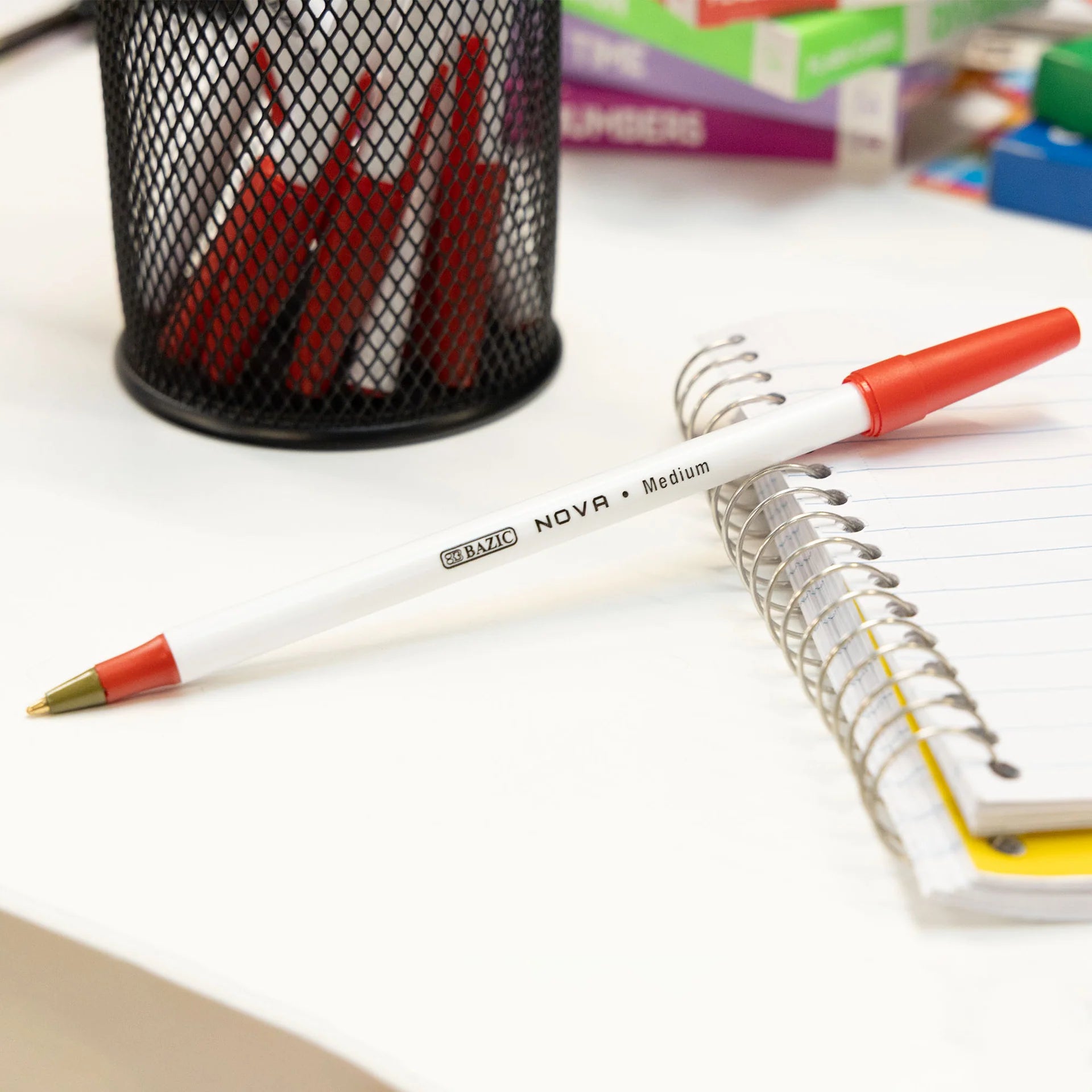 - NOVA RED COLOR STICK PEN. Each pack includes 12-Nova Red Stick Pens. The medium ball point spreads ink evenly as you write, offering dependable performance for everyday use.