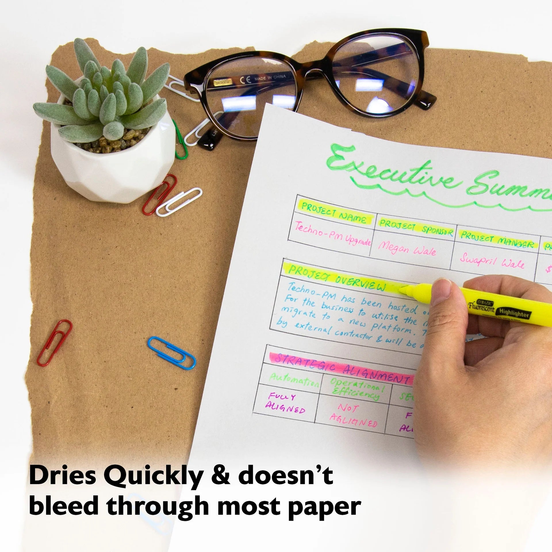 • QUICK DRY & SMEAR FREE. Dries quickly and doesn't bleed through most paper including glossy and thin papers; smear and smudge free. Durable tip lasts even after highlighting on rough surfaces.