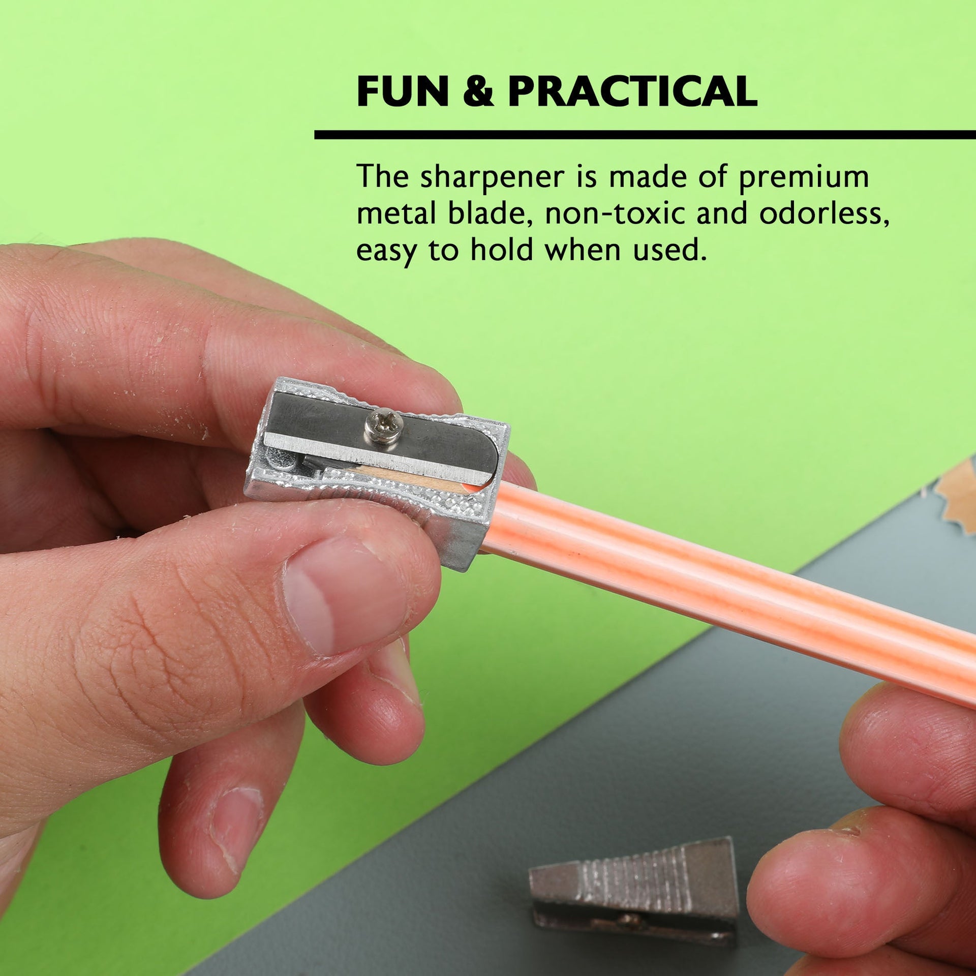• FUN & PRACTICAL. The sharpener is made of premium metal blade, non-toxic and odorless, easy to hold when used. Great for teacher, students, teens, artist, professional.