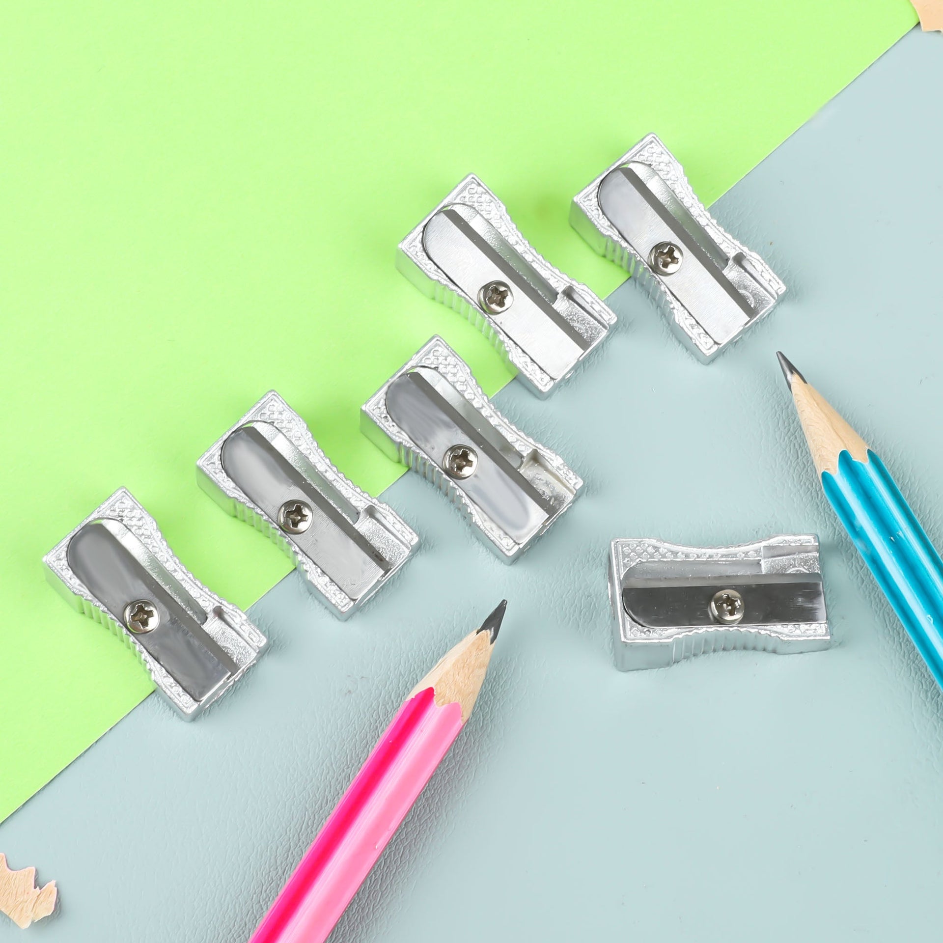 • SINGLE HOLE SHARPENING. Measure 1" x 0.7" x 0.5". 1 blade sharpeners accommodates Regular/Small/Colored pencils. Metal sharpener is very strong and durable.